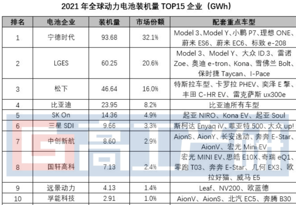 2021年宁德时代高居榜首