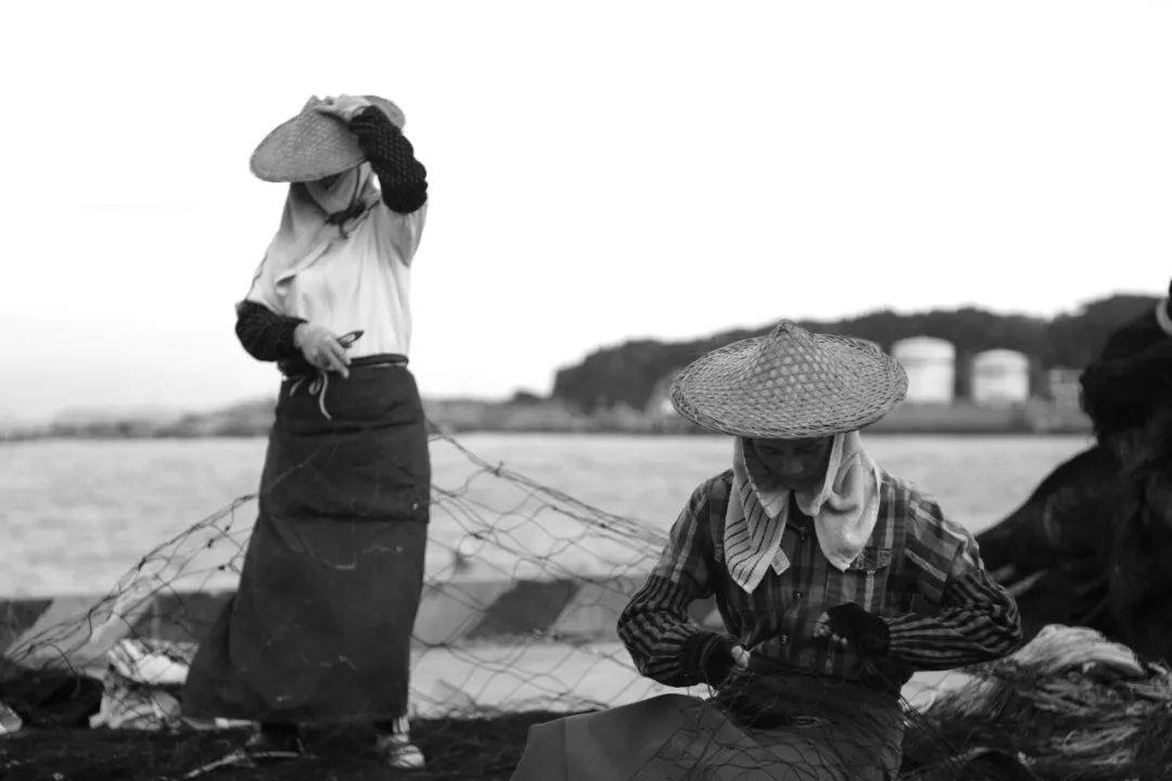 2017年10月中下旬,《地久天长》移师福建连江县苔菉镇的北茭村拍摄福建部分,我们在北茭村搭建了刘耀军和王丽芸的家。北茭村是一个活着的渔村,人们打渔、晒网、生活。在主场景对面的海边大堤上,有许多织鱼网的渔民,日出而作,日落而息。作为我们这些北方旱地的人来说,也是难得一见的场景。电影里的王丽芸,也有和他们一起织网的情节。