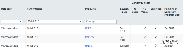 做过汽车电子的小伙伴们应该很熟悉NXP的S12单片机,2009年就有了,即便现在车上用的还是非常多的。NXP针对“车规级”电子零部件有长期供货计划,保证15年,并且还可以延长(Extended),这些官网上都能查到。