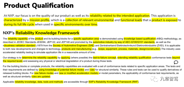 这个说起来简单,实际执行起来其实麻烦无比,工作量巨大,需要很长时间。很多客户应用数据的积累,数据量也是巨大,如果没有信任,数据的可信度也是个问题。所以中间就涉及到了芯片的设计、制造、变更、应用、数据监控等一系列环节,还有就是依赖于IATF16949、AECQ、PPAP等汽车行业标准、流程、质量管理措施的执行,这是一整套的,缺一不可。
