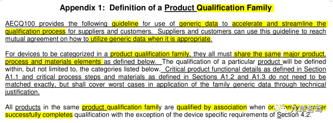 这个我们在AEC历史那部分讲过,建立AEC的初衷就是为了解决电子零件资格认证问题,如果能够建立通用认证规范,每家电子元器件公司就可以使用通用资格认证来替换原来每家公司使用的各种不同的资格认证方法,就这样,AEC认证测试标准就产生了。