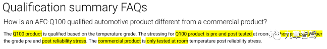 AEC标准的侧重点是器件的可靠性及长期供货的一致性(主要体现在变更流程要求);