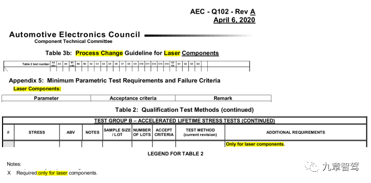 并且,AEC-Q102还专门规定了针对激光器件的以下部分: