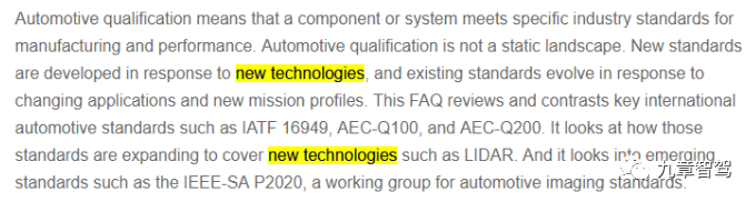 所以说,AEC-Q102标准不是用于激光雷达的,是用于激光雷达中用到的元器件的。这么说吧,所有的AEC-Q102标准,全部都是规定电子元器件的,而非电子零部件。因此,元器件通过了ACE-Q102标准下的“车规”,不代表激光雷达也通过了。