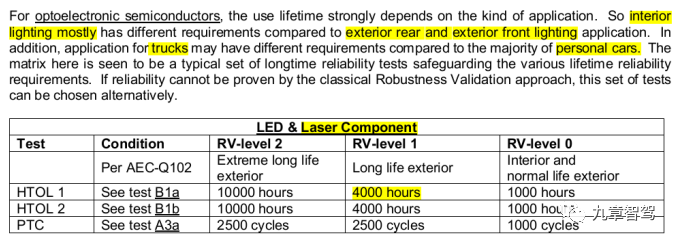 我们再换个角度看一下。熟悉AEC-Q标准的小伙伴们应该了解,耐久类测试要求起步通常是1000小时,但在AEC-Q102中,除常规测试项目外还专门规定了一个可靠性验证Reliability Validation,时间从最低1000小时到最高10000小时。