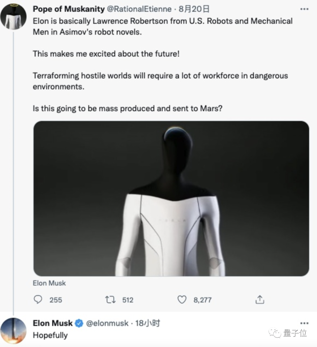 除此之外,马斯克还曾表示,希望将人形机器人送往火星,代替人类工作。