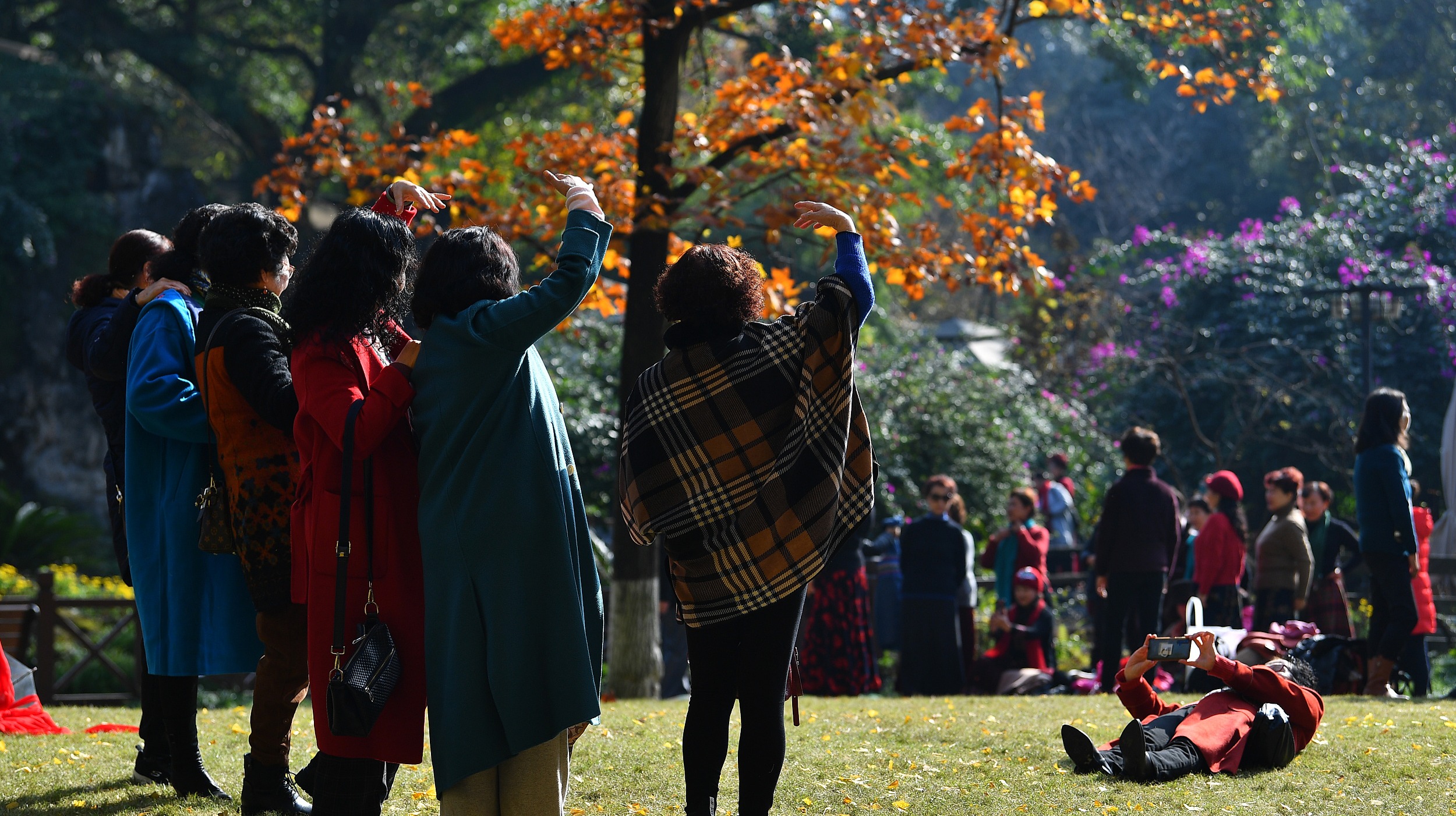 你闲情逸致逛公园,孃嬢们却把它当健身房