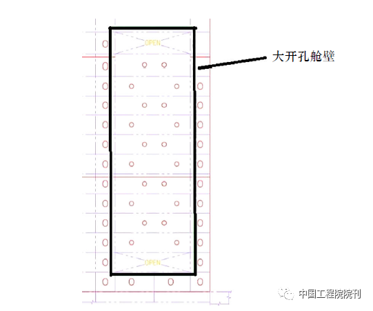 在立柱设计中,为保证有足够的储存容积,立柱尺寸设计为21 m×21 m,如此大的尺度需要充分考虑内部的结构支撑。从确保疲劳寿命考虑,支撑结构的连续性越大越好,但由于内部储存的凝析油需要实现比较好的流通性,这就要求支撑结构不能太封闭。经过多轮优中选优的设计迭代,最终确定了大开孔形式的舱壁结构(见图6),通过多立柱大型储油舱大跨距结构支撑技术,实现了舱室中部区域较好的流通性和舱壁连接区域较好的连续性。