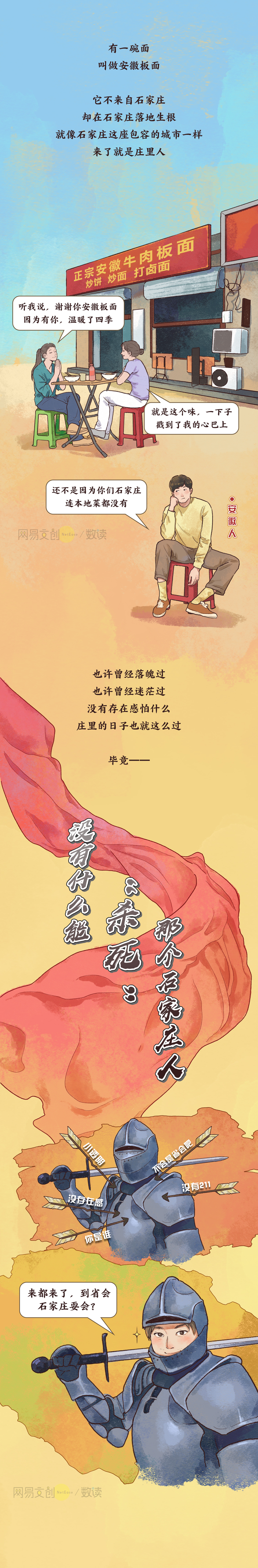 在民心河塑胶跑道上散散步,在北国商城逛逛街,在 36524 便利店拿一筐啤酒,在街边小摊来碗安徽板面,总之——“没有什么能杀死那个石家庄人”。