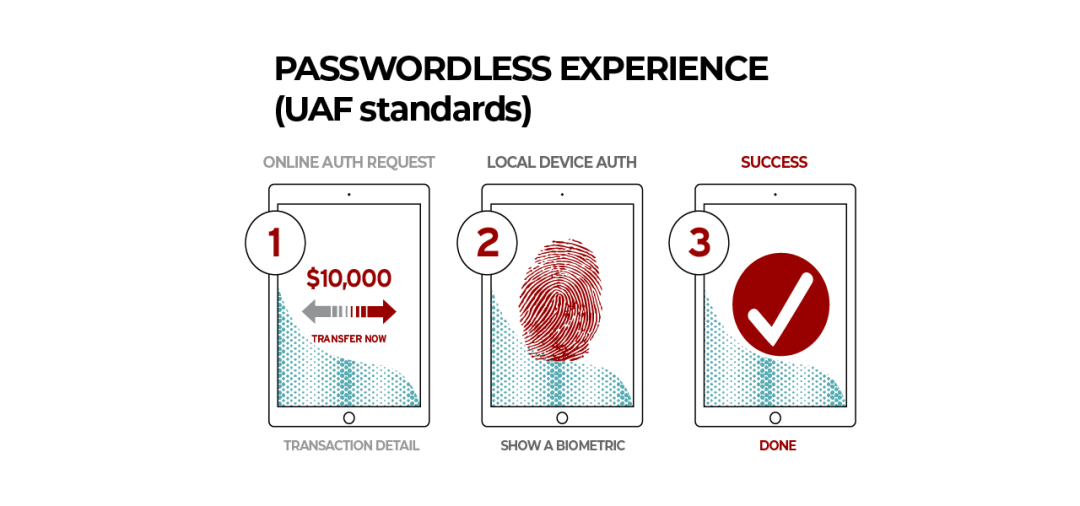 在过去数年中,FIDO 联盟推行过三种不同的无密码协议。其中,FIDO UAF 于 2014 年被提出:用户通过安装生物验证装置,实现诸如直接识别指纹并完成支付等操作。