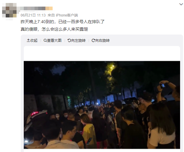 现场的露楚,一眨眼儿就被抢光了,排起的长队绵延上百米,却只有前头的幸运儿才能买到。