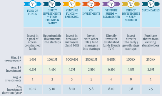家办做投资,一般会从FOF开始,这为它们提供了一个多样化的风险敞口;然后在朋友或家人的推荐下开始做直投,这有助于它们获得投资经验。