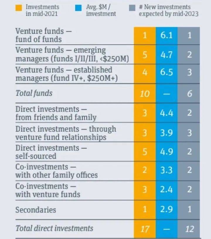 其中,在风投的子投资组合资产配置中,2022年,家办将减少直投,增加对二级市场的投资以及共同投资。