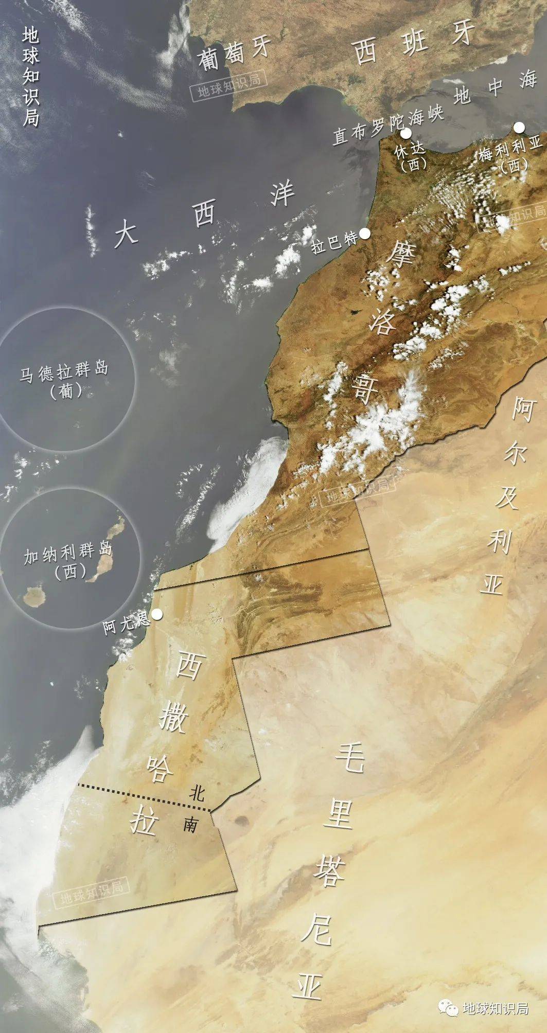摩洛哥和毛里塔尼亚瓜分了西撒哈拉领土(毛里塔尼亚后来退出);阿尔及利亚对西撒哈拉没有领土要求,却支持主张西撒哈拉独立的“波利萨里奥阵线”,双方因此结仇(我局也曾介绍过西撒哈拉冲突)。
