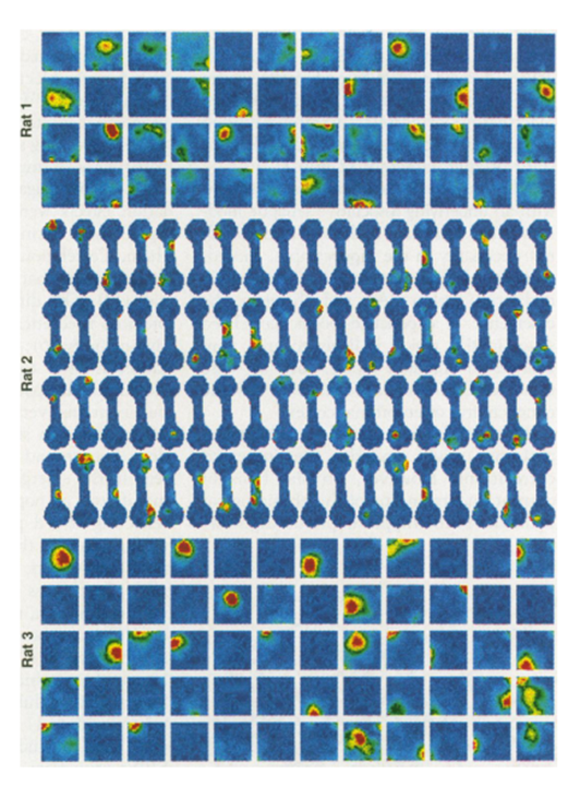 三只大鼠记录的海马锥体细胞群的空间放电特征