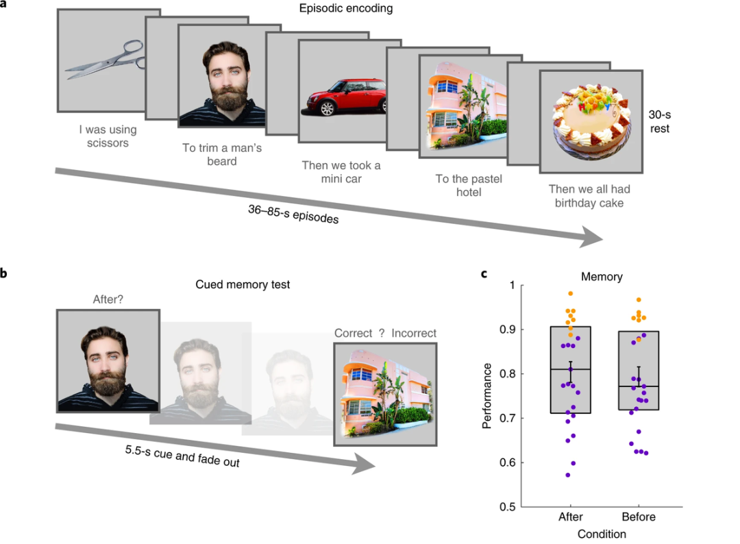此外,不仅是简单的程序性记忆,信息更为复杂的情景记忆也被发现会因神经回放得以巩固(Wimmer et al., 2020,如下图所示)。