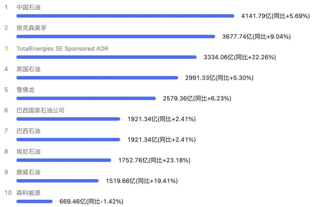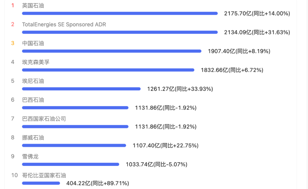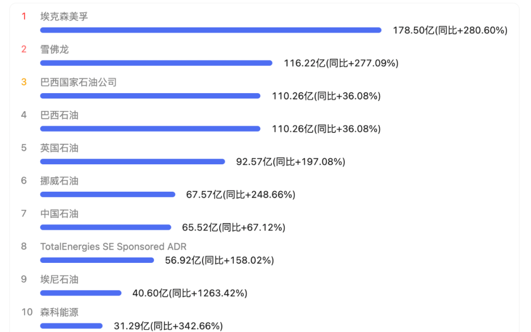 部分石油公司2022年二季度净利润