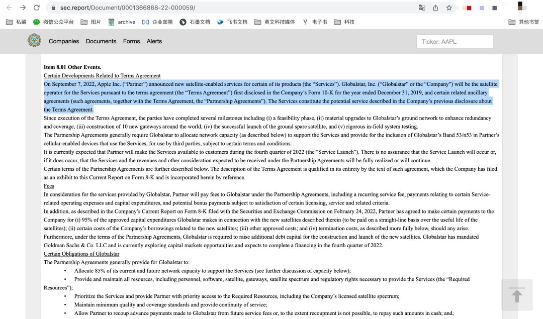 9月7日,苹果发布了新产品后,Globalstar也在SEC(美国证券交易)网站公布了这项合作,并表示在此之前已经对其网络进行了大面积升级、增强覆盖和冗余,并表示将为苹果的业务预留85%的网络带宽。