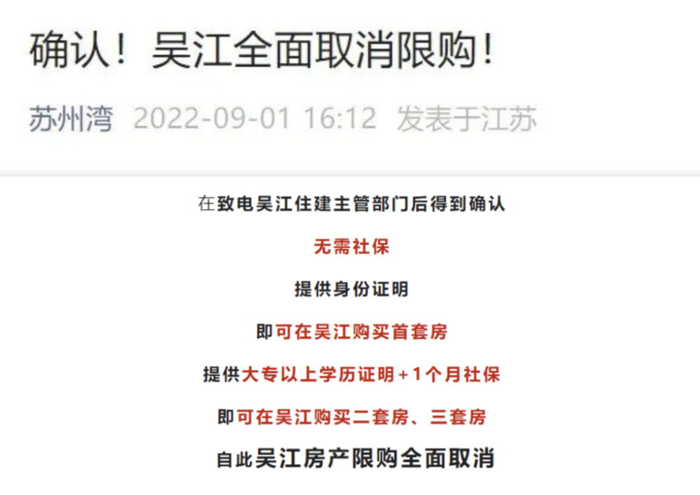 9月1日,吴江区不声不响取消了外地限购。