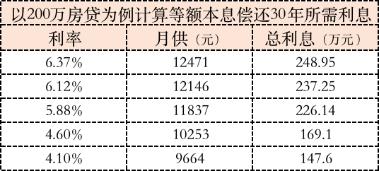 以4.10%办理首套房贷款的买房人,相比于6.37%的利率,直接省下超100万元。