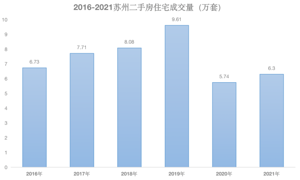 单看二手成交量,自2019年苏州二手房成交量突破9万套后,2020年直接断崖式下跌,只有5-6万套的水平,到了2021年虽略有回升,但却连2016年的标准线都还没达到。