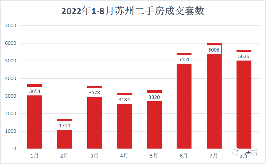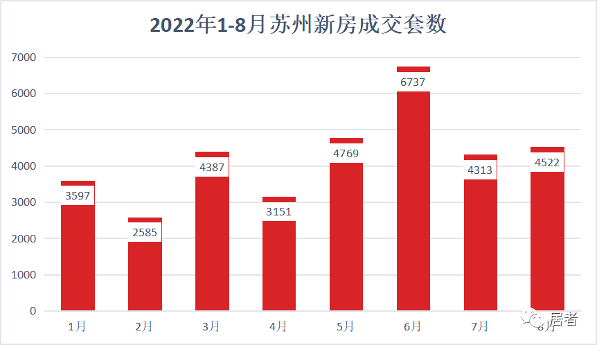 我们对比了一下2022年苏州市区1-8月的新房、二手成交量: