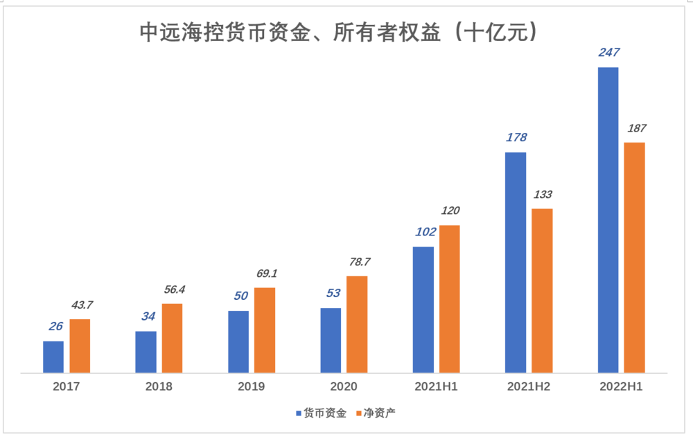 中远海控前些年“穷怕”了,现在是挣大钱、花小钱,账面货币资金和净资产快速攀升。