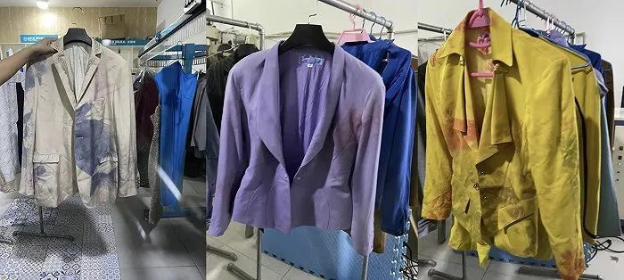 在洗衣店,黄女士拍下了衣物破损情况,许多衣服都出现了染色情况,统计之后约一半衣物无法补救,损失高达50多万元。图片由受访者黄女士提供