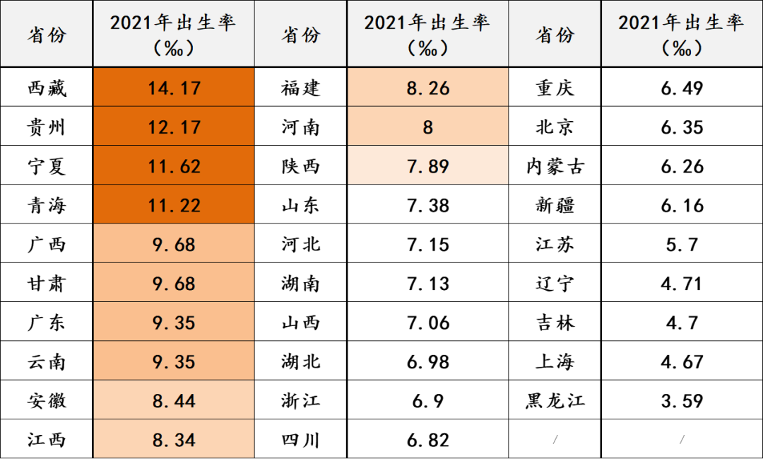 先让各位心里有一个坐标系:2021年全国人口平均生育率是7.52‰。