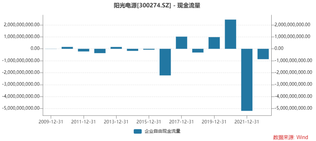 隆基绿能,这个号称“未来光伏行业的沙特”的公司,自由现金流量如下: