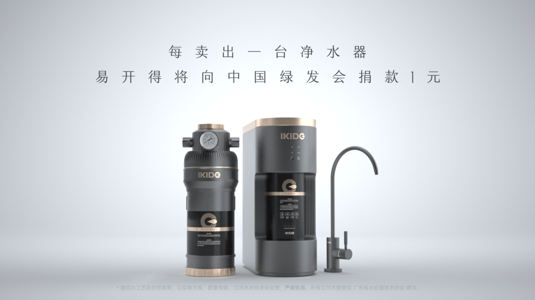 双十一期间,购买易开得可获赠一套「七大江河水」珍藏套组,每卖出一台净水器,易开得都将向中国绿发会捐款,用于生态保护的公益事业。同期,易开得还宣布王一博成为品牌代言人,购买MQ7净水器,备注“王一博”,加赠来自王一博家乡洛阳的特别款「黄河水」。