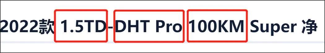 只是因为混动车的数据维度更多,有些会出现诸如“1.5TD-DHT Pro 100km”这样的大信息量。“1.5TD”代表内燃机规格,“DHT Pro”是该品牌对于三挡DHT变速器的称谓,二者间的“-”表明了内燃机与电驱变速器混合驱动,“100km”表示纯电续航里程。