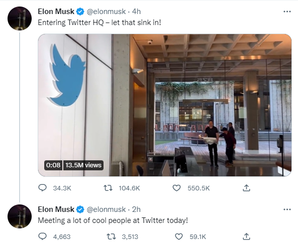 马斯克26日现身推特旧金山总部,并在推特上发布了一段他“抱着洗手池进入大楼”的视频片段,马斯克推特账户上公开的个人简介就已改为了“Chief Twit”,暗示其将成为推特的最大所有者。