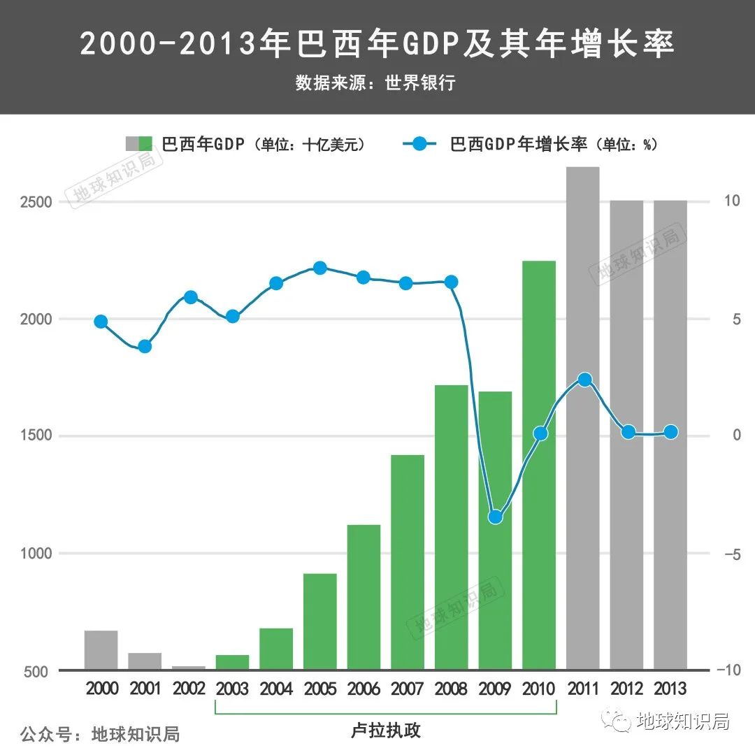 从卢拉2003年执政开始,巴西GDP增长逐渐走高