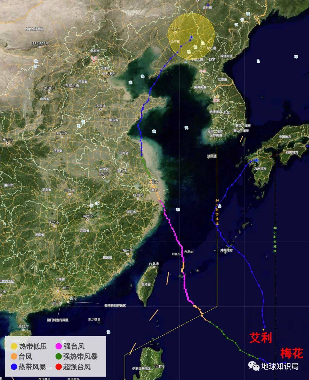 西北路径的台风“梅花”和转向路径的台风“艾利”(图:中央气象台台风网)