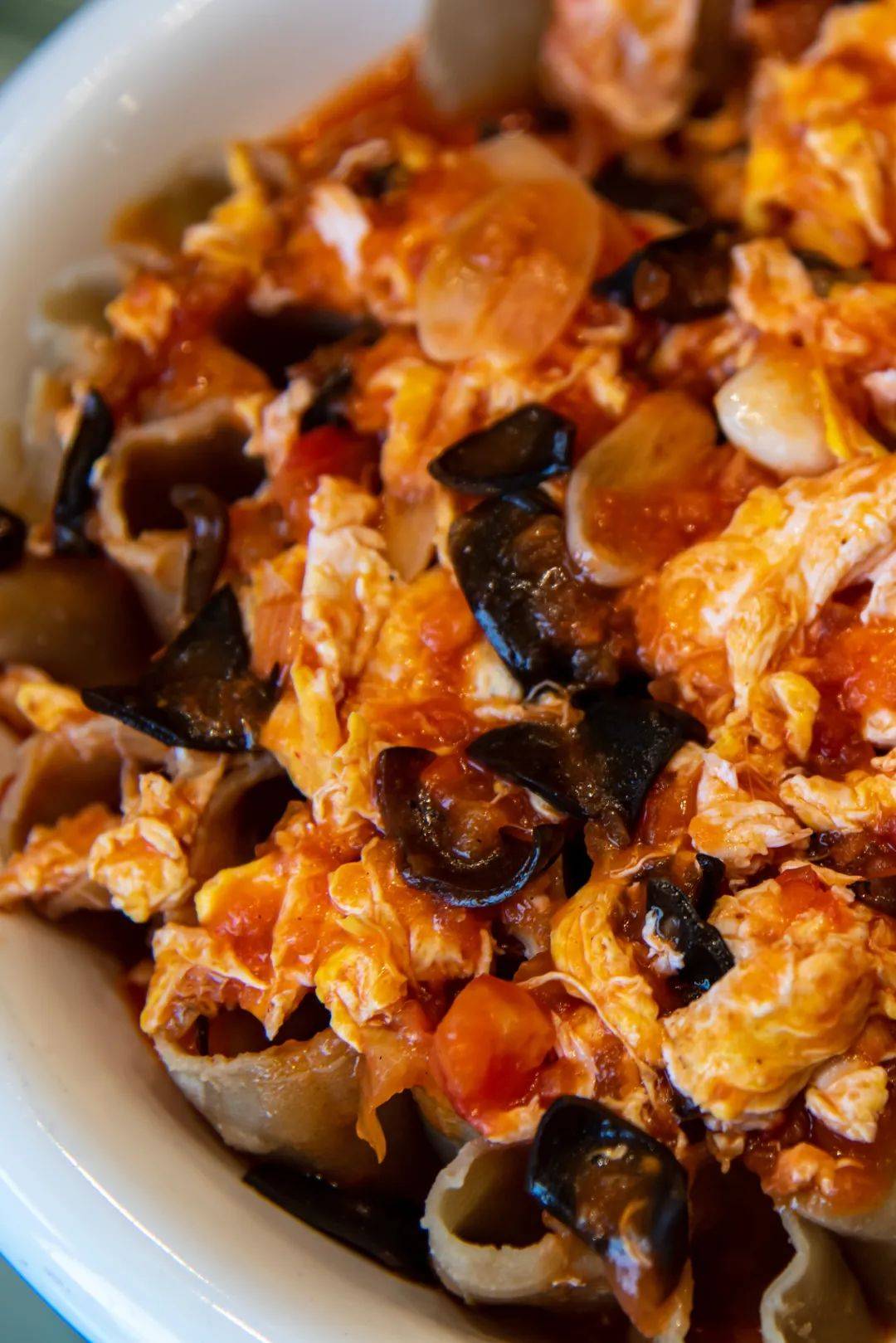 莜面栲栳栳,各种炒番茄是最经典的浇头。摄影/李平安