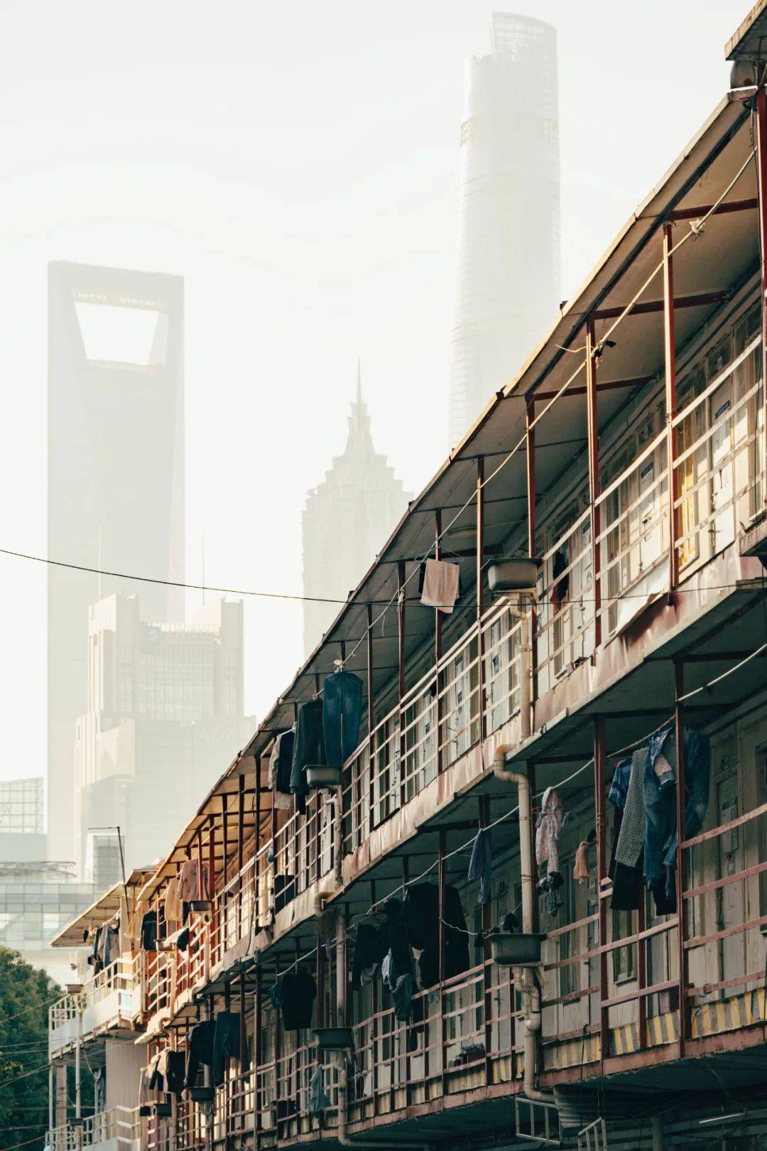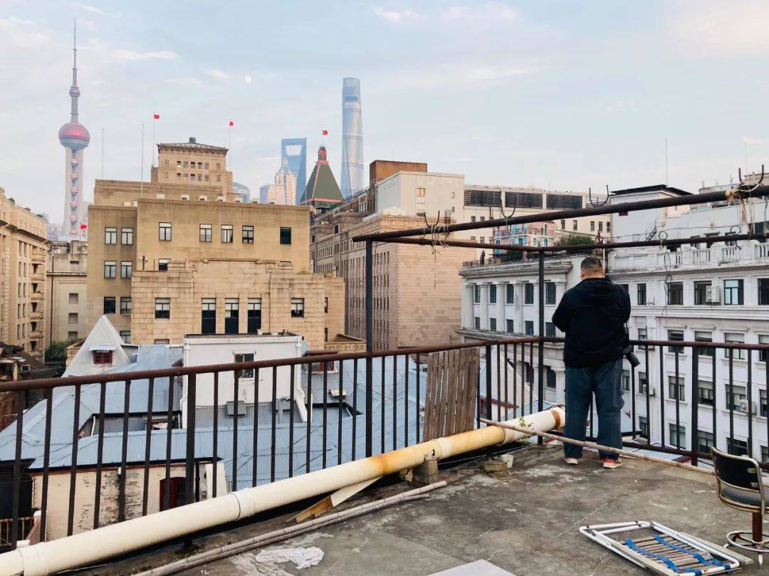 坐在老房子的晒台之上,远处雾中的东方明珠和陆家嘴则显得十分梦幻。