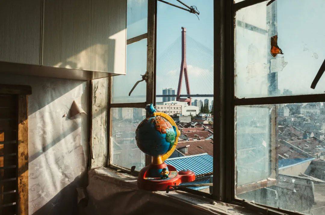 老式木头窗框和碎花窗帘、窗子上的《还珠格格》照片、窗户对面的东方明珠。围绕着苏州河拍摄的无数张照片,都成为了他儿时回忆的一个定格。