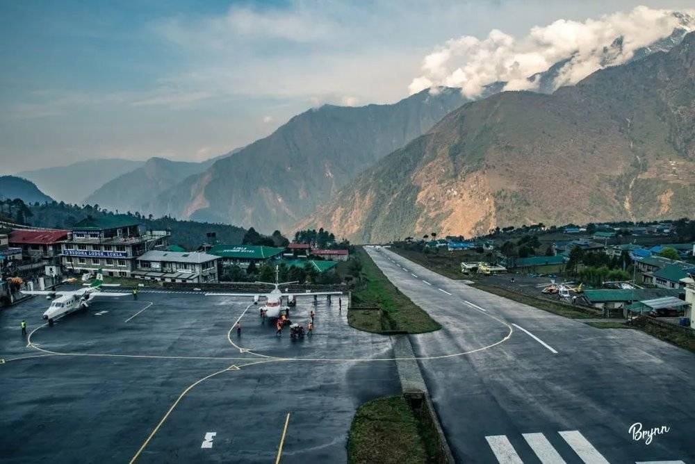 EBC的起点,是喜马拉雅山南麓小镇Lukla卢卡拉(2840米)。Lukla卢卡拉机场,被誉为世界最危险的机场,它建在海拔2840米的悬崖边,跑道仅460米,Lukla环境气候多变,每天能不能起飞全靠运气。飞机老旧,还是小飞机机场没有信号塔,没有指挥中心,全凭驾驶员的判断起飞和着陆,所以空难频发。其实去Lukla,还有另一种选择,那就是从加德满都坐车至Jiri,然后徒步3~5天可以到达。不过这一段路途既没有风景,又耗费时间,所以大多数人还是选择冒险去坐小飞机。