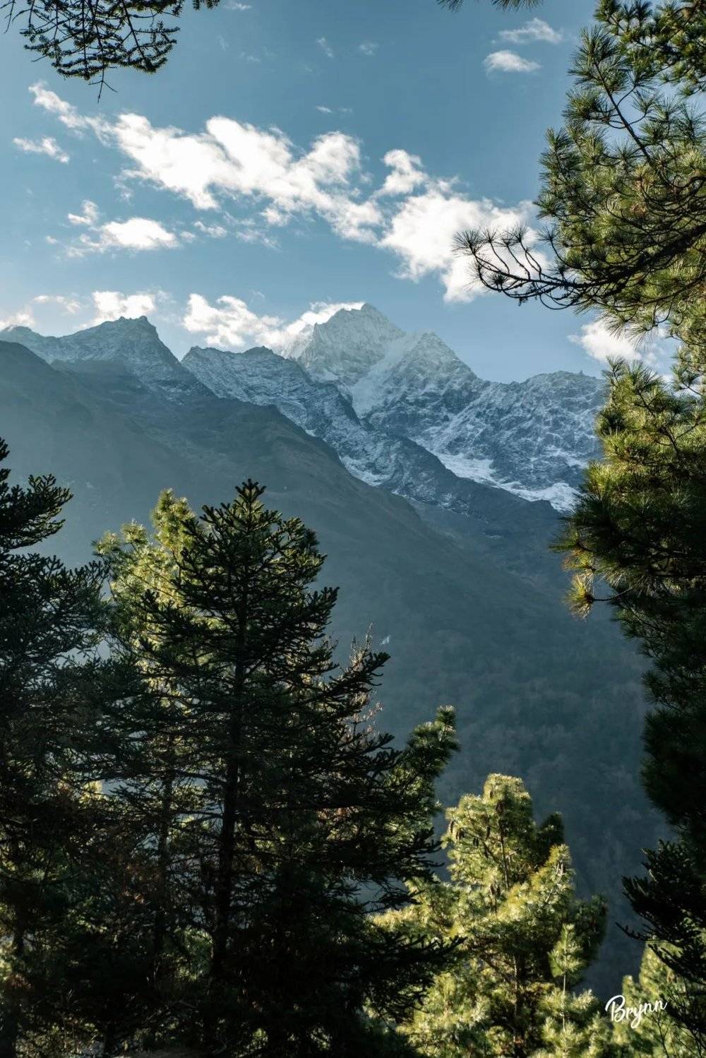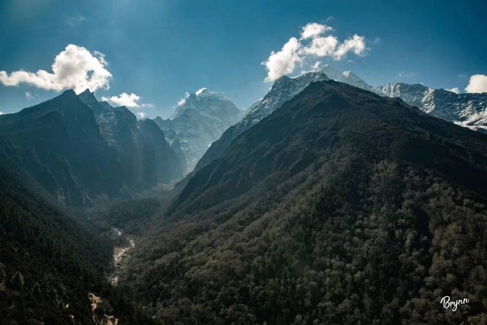 本预计走4小时到Namche Bazar 南池市场(3440米),但实际上只花了3小时。到南池市场的这段路,先是继续沿着河边在峡谷里走,再是上坡。清晨的峡谷,空气异常清新。