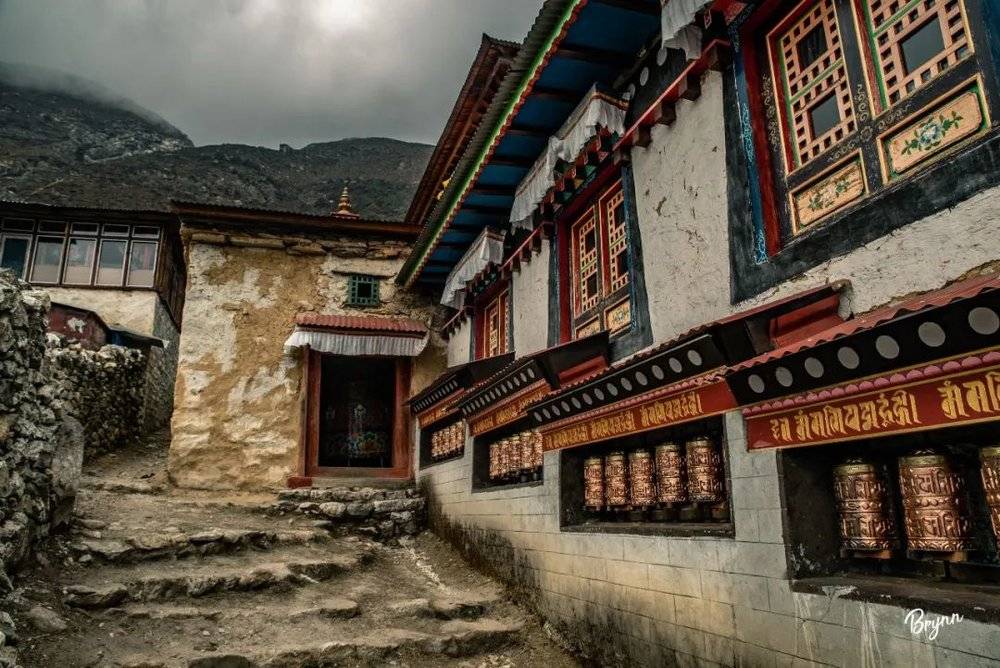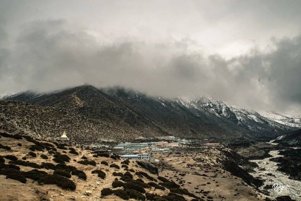 傍晚去拍了村子全景,能看见远处的Tengboche,望着袭上村头的阵阵山雾,心中一阵感慨,这里简直就是我梦里的神仙居所!有机会,我一定要在这里住上一段时间。