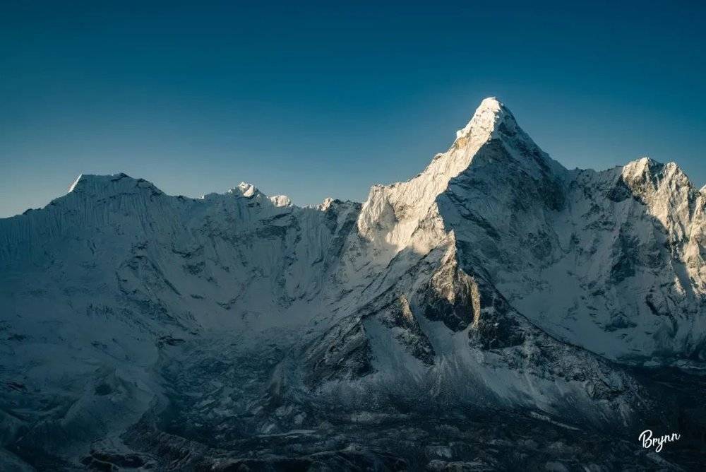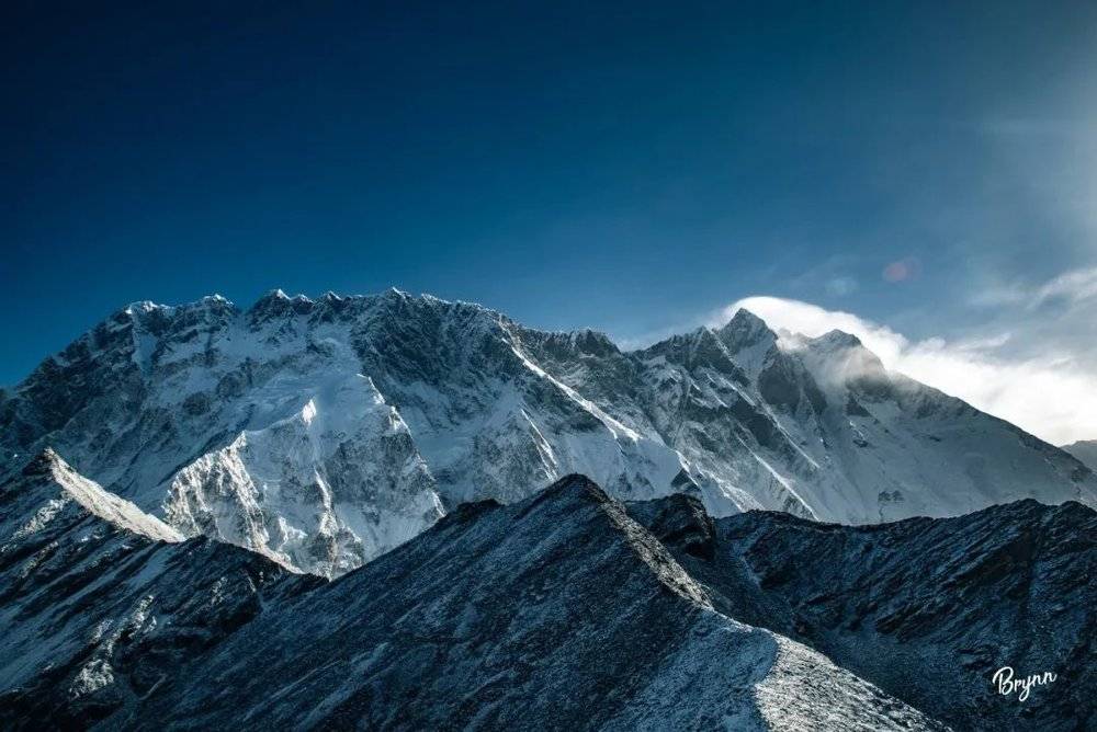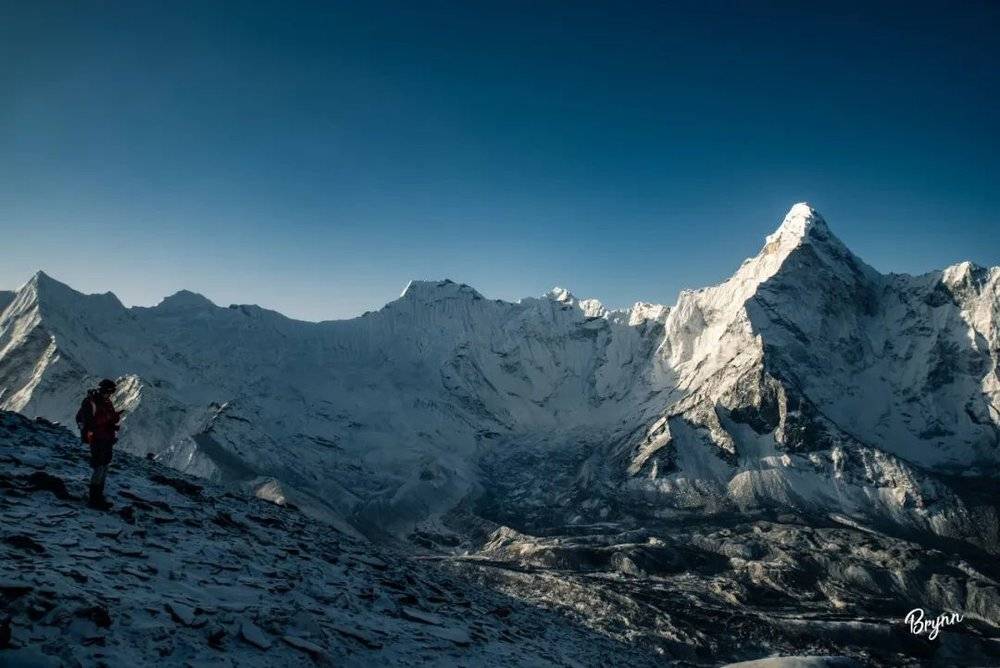 远处的 Makalu马卡鲁峰8485m,虽然只是露出一点尖,但也显露出8000m+雪山的王者之气。