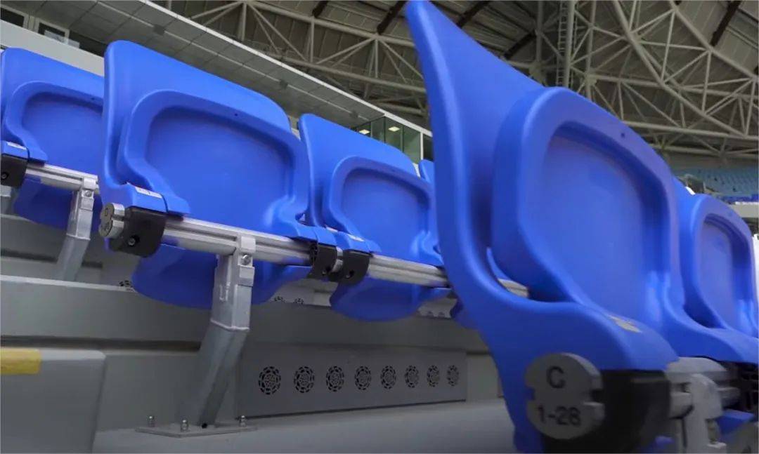 这同时起到空气净化的作用。清爽的空气从观众脚下吹出来,再从头上吸回去,就像一个小小的机舱座位,对不论是粉尘、汗臭,还是病毒,都能起到一定的过滤。