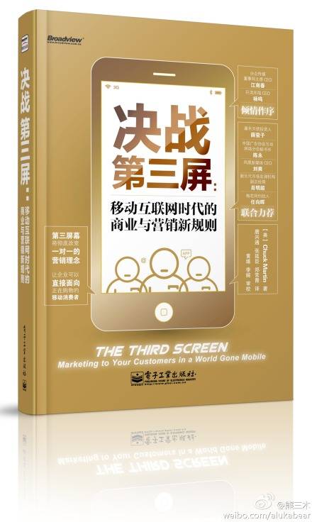 决战第三萤幕》,一本细分小行业专业书,竟然大摇大摆忝列本月十大畅销书中,奇怪。买回去连夜看完,觉得非常受用,比马杀鸡还舒服,好像吃下去一剂清凉补药,全面、深入却又通俗,也就200来页吧,把移动营销这回事说的明明白白。时代变化太快,全局性、时效性兼具的行业工具书,真的除此之外唯二无三。
