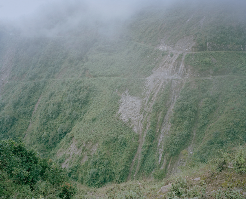 所有的路都被冲成了这样,完全是走不了车的,摩托车都走不了。我花了4个小时走到村子里面,等到拍完照片出来,花了8个半小时。
