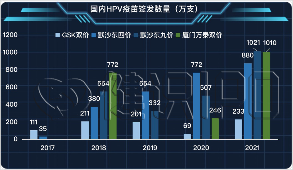 中国目前9~45岁区间的3.3亿适龄女性人口HPV疫苗的覆盖率约为8%,这几年HPV疫苗的签发数量一直在增加,已经从2020年的1544万支增加到2021年达到3144万支。此外多个城市和省份先行试点,开始为部分15周岁以下的女生免费接种HPV疫苗。