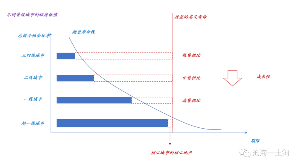 对于不同城市的住房,其年租金的久期是不一样的,因为城市的能级不一样,有的城市蒸蒸日上,年租金的可持续性好,于是久期高;有的城市江河日下,年租金的可持续性差,于是久期低。