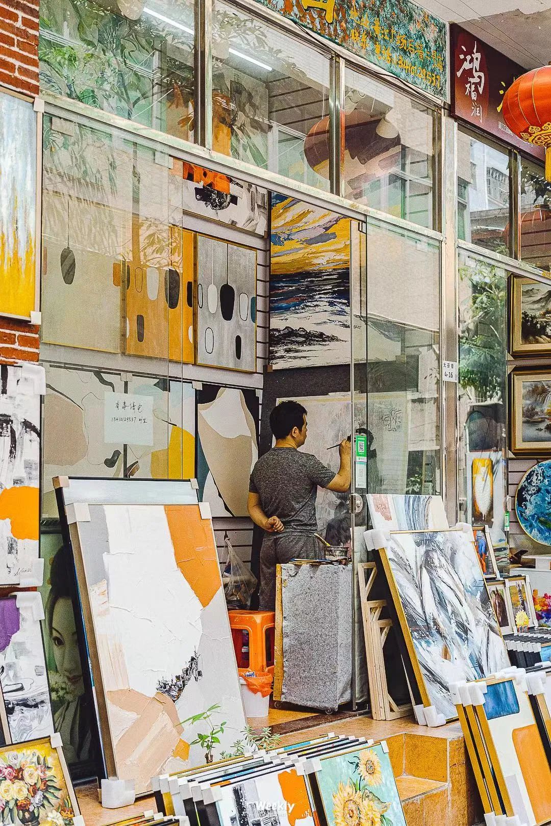 店铺有1200多家,仿佛巨型的流浪美术馆一般,没有博物馆那样精致和带有距离感。画作整齐地码在店门口,蹲在路边翻个半个钟选画,想象自己是自由艺术家也不为过。