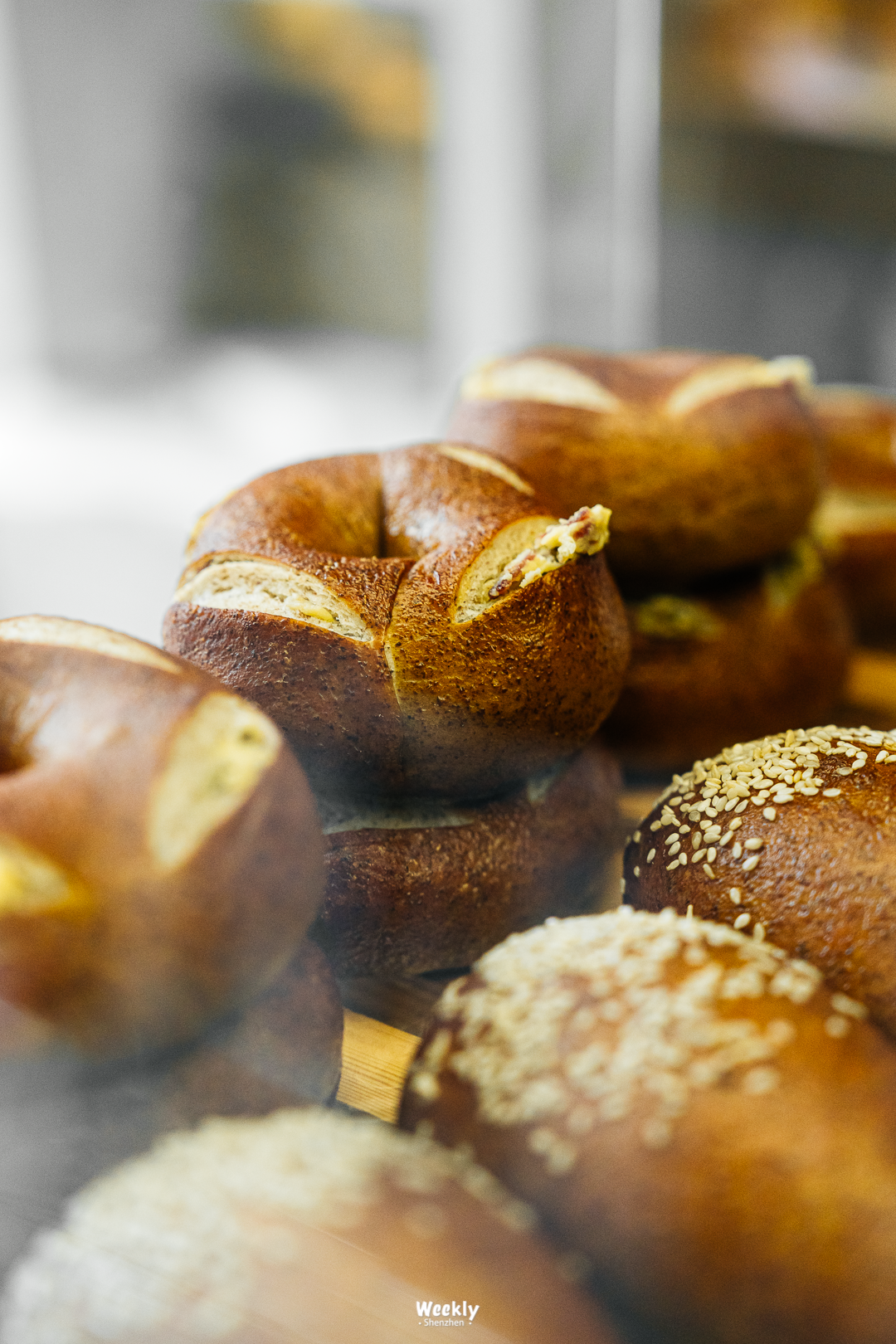 这家店虽小,但很有特色,主打碱水和欧包。碱水的种类很多,个头也很实在,带着热度一口咬下,面包是边缘发脆而内里柔软的口感。