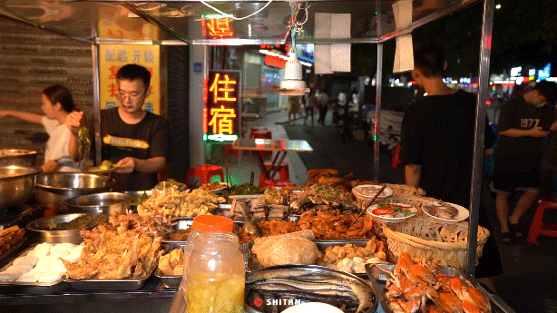 到半夜,街头也还有烟雾袅袅的烧烤摊。